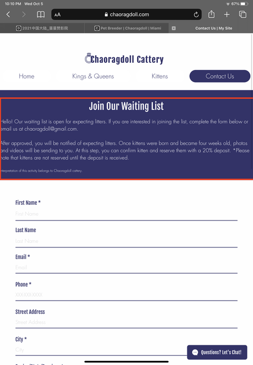 The business owner built the original Chaoragdoll website on Wix and they don't want to spend extra time transferring their website from Wix to another, so I agreed continue using Wix for the rebuild.